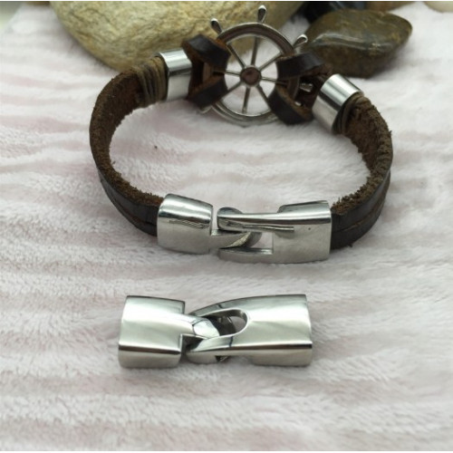 Замок из нержавеющей стали для плоских кожаных шнуров 10х5 мм. Размеры браслетной застежки - на допо..