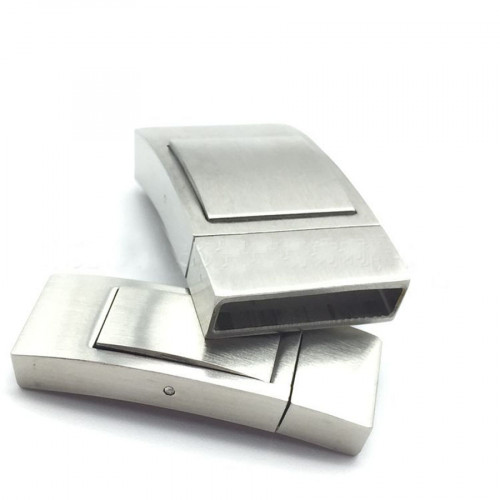 Замок магнитный из нержавеющей стали для плоских кожаных шнуров 10х5 мм. Габариты застежки 30х11 мм...