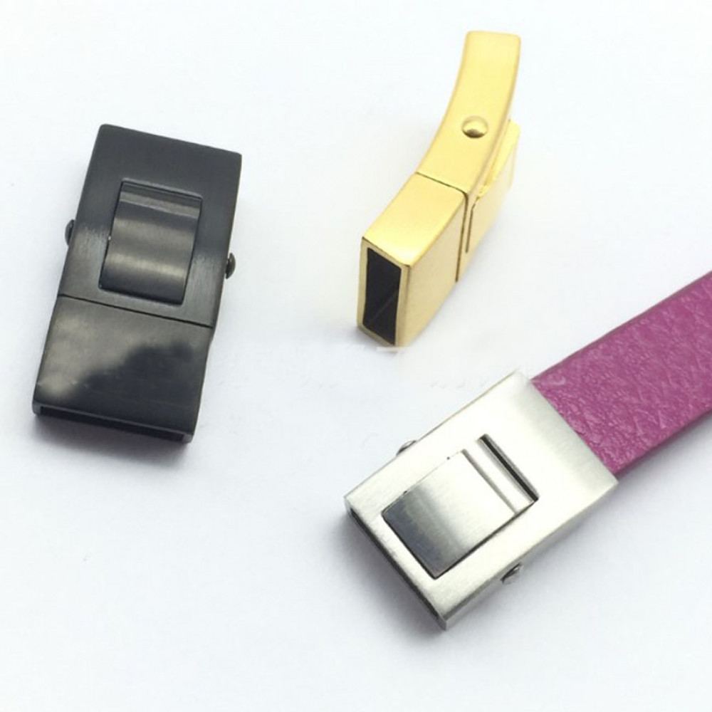 Замок магнитный из нержавеющей стали с покрытиями разных цветов - для плоских кожаных шнуров 10х3 мм. Габариты застежки 25x11,7x5 мм.