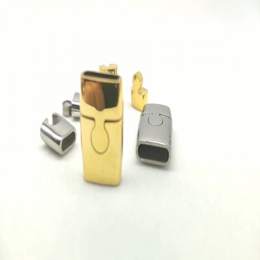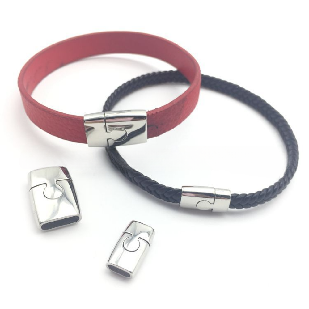 Замок магнитный из нержавеющей стали с покрытиями разных цветов - для плоских кожаных шнуров 10х3 мм.