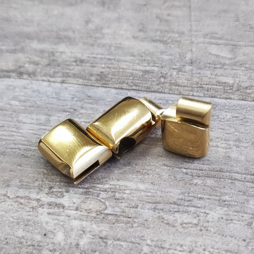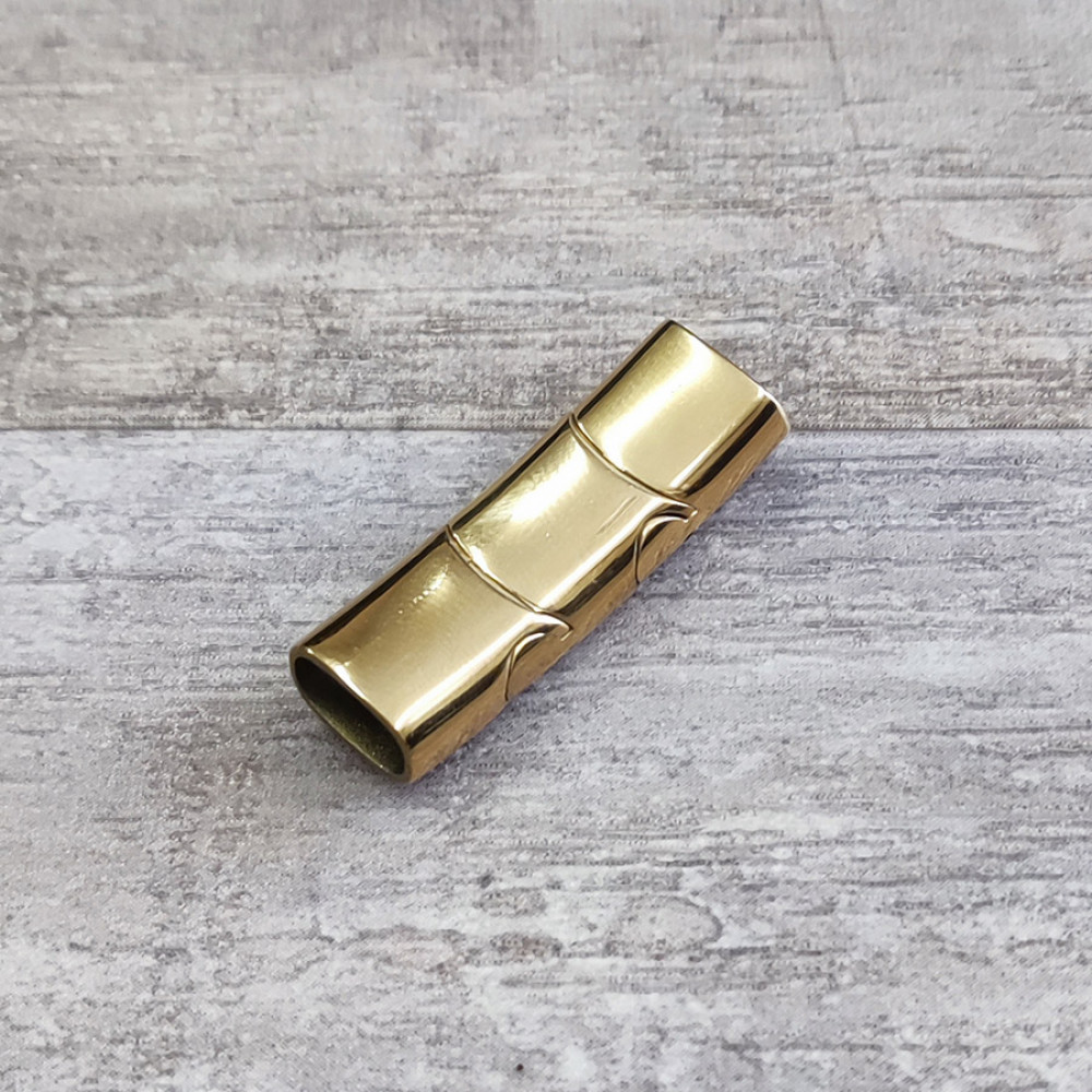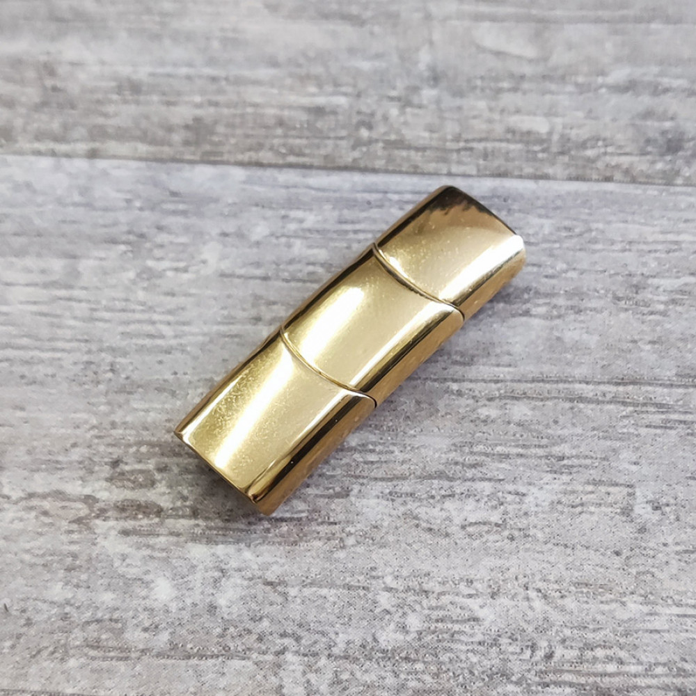 Замок магнитный из нержавеющей стали с покрытиями разных цветов - для плоских кожаных шнуров 10х5 мм, внешние габариты: около 11х36 мм, размер среднего съемного звена - 12 мм