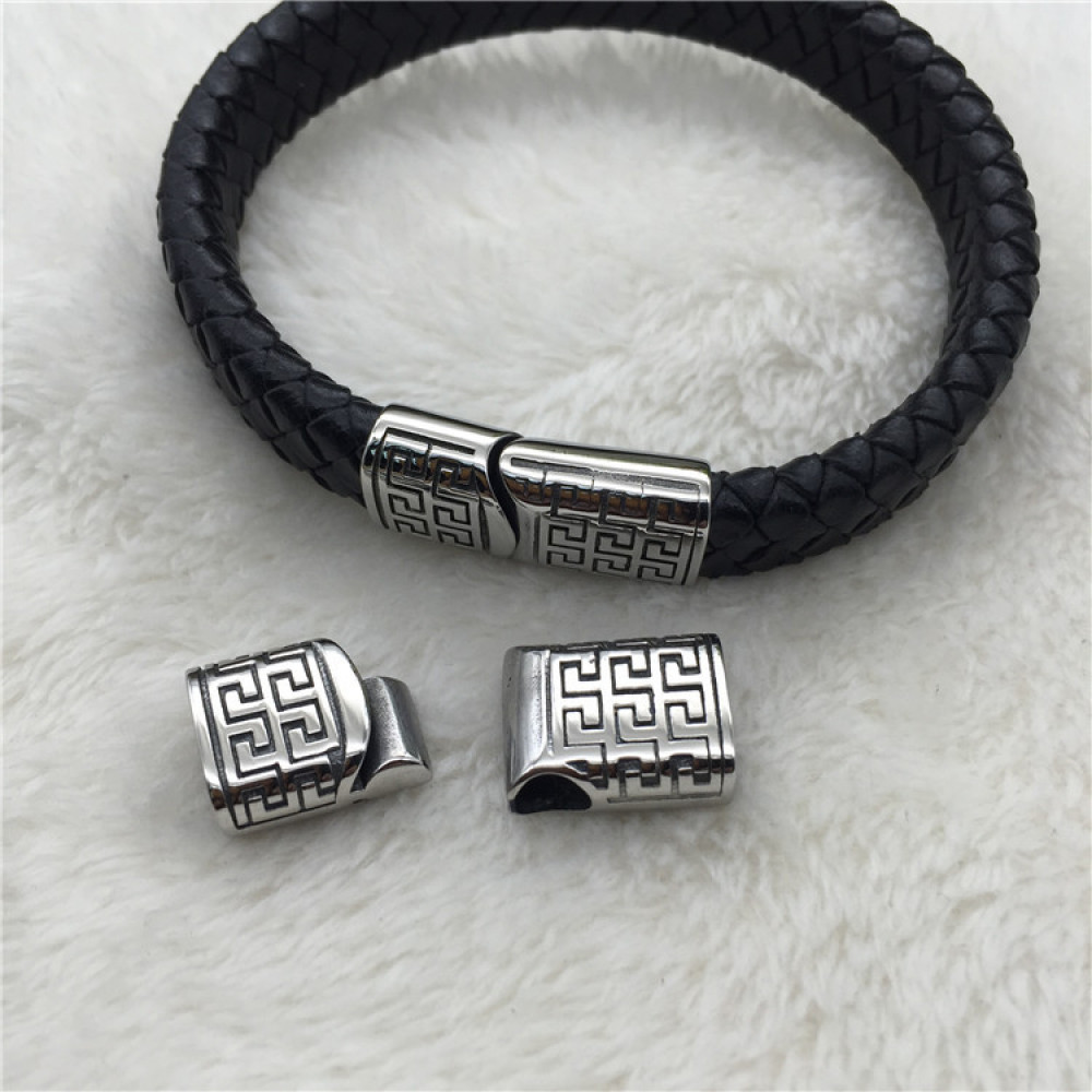 Такие застежки используют при изготовлении браслетов из кожи в стиле регализ (regaliz), подойдут как для мужских, так и для женских вариантов.