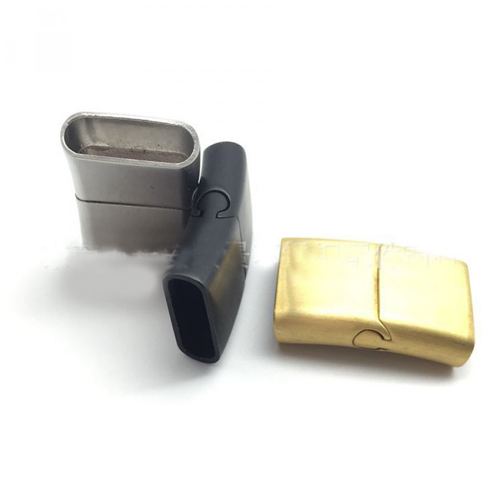 Замок магнитный из нержавеющей стали для плоских кожаных шнуров 12х3 мм.