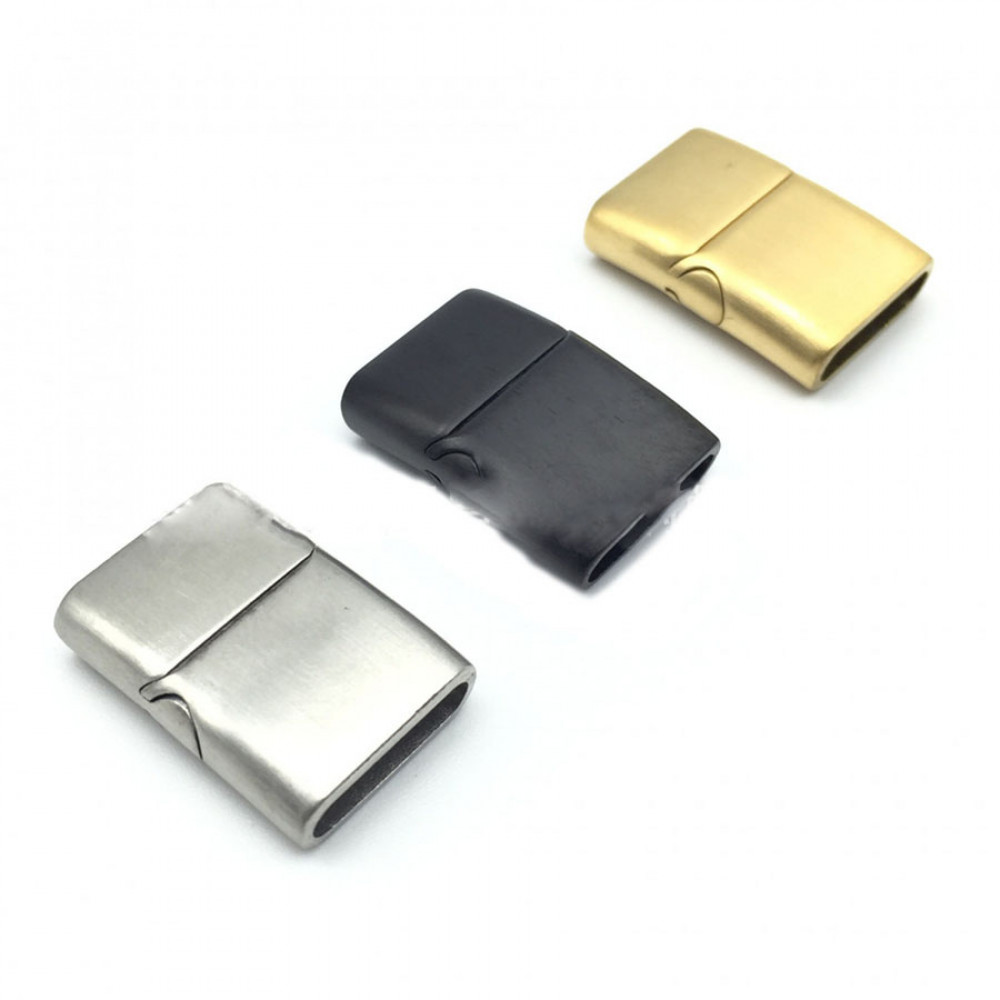 Замок магнитный из нержавеющей стали с покрытиями разных цветов - для плоских кожаных шнуров 20х6 мм. Габариты застежки 24х22х9 мм