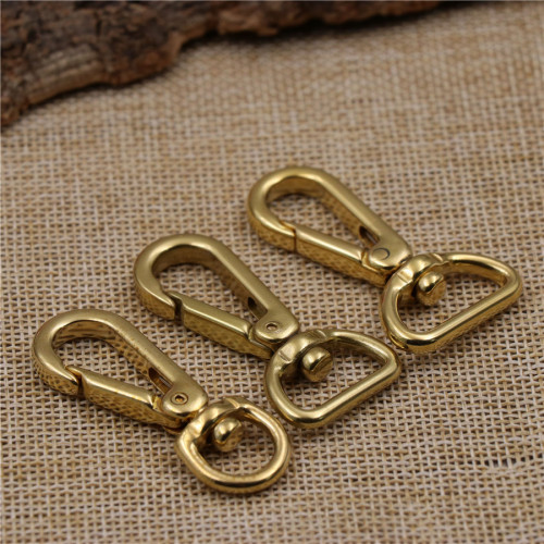 Карабин латунный под крепление при помощи кольца. Широко применяется при изготовлении сумок, рюкзако..
