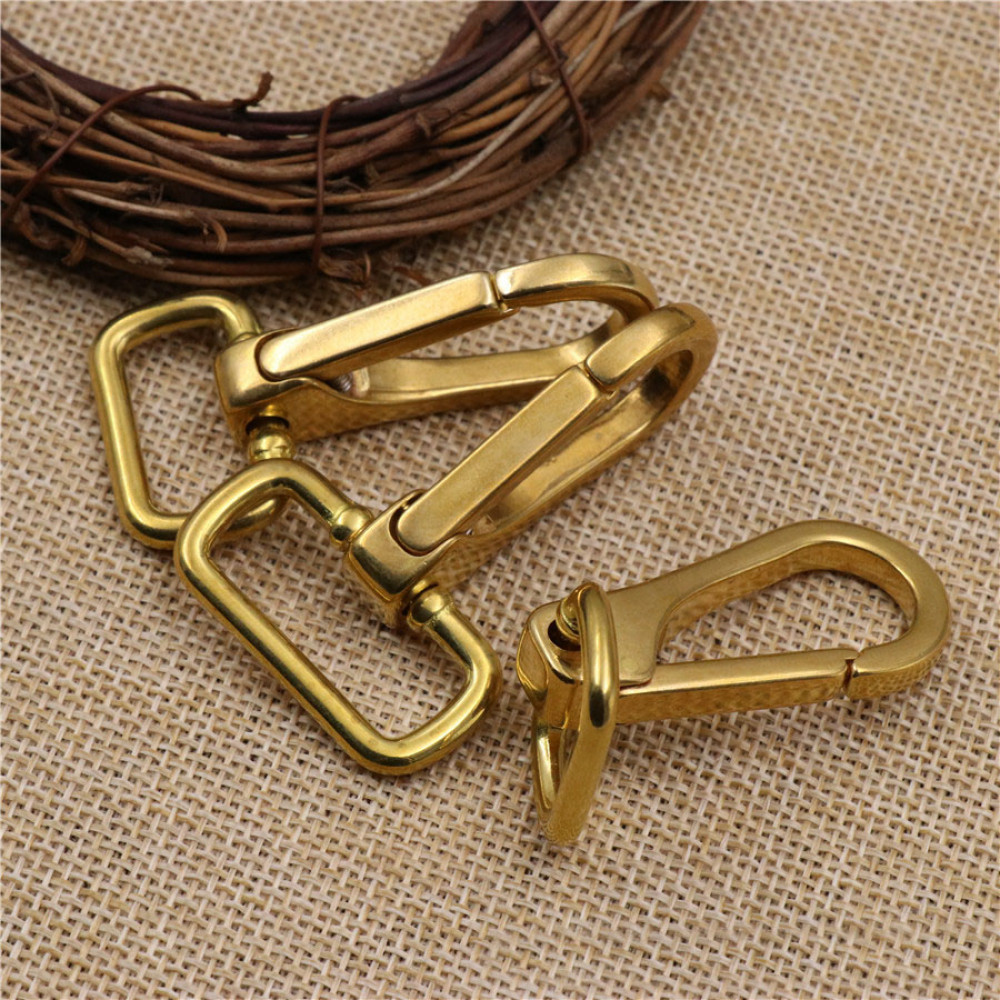 Карабин литой латунный. Карабины широко применяются при изготовлении сумок, рюкзаков, в верхней одежде и декоративных украшениях