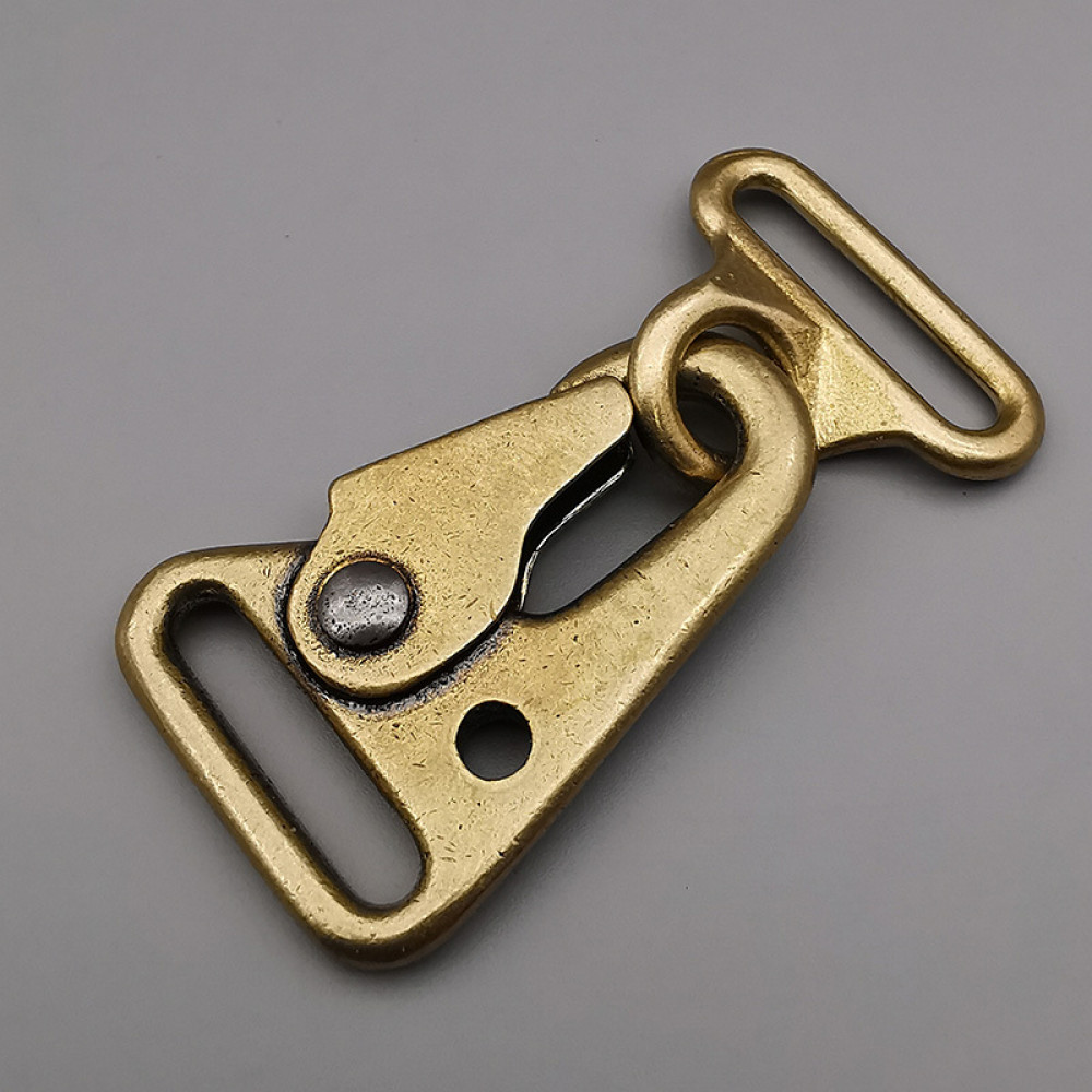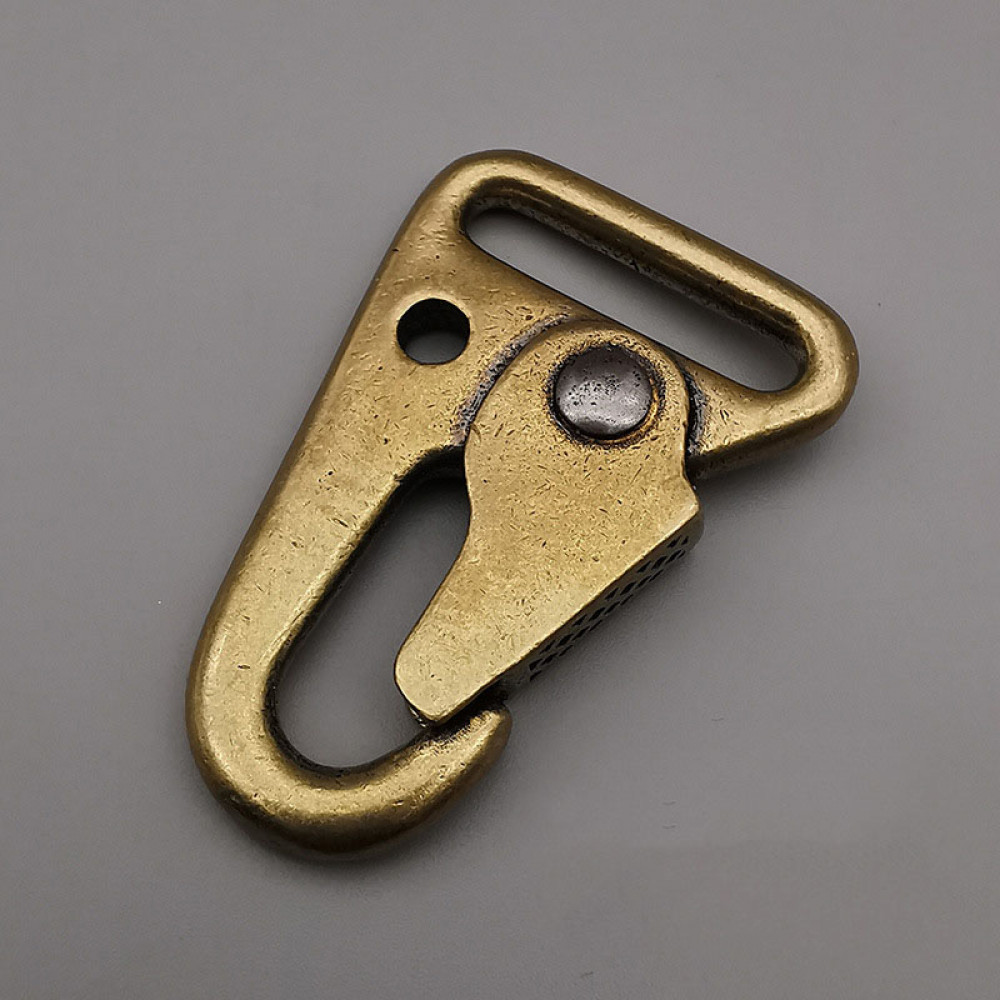 Карабин латунный на ремни шириной до 25 мм. Широко применяется при изготовлении сумок, рюкзаков, портфелей, сумок для ноутбуков.