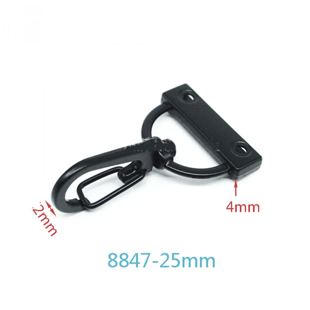 Карабин поворотный. Размеры: место крепления - 25 мм, длина карабина - 43 мм. Остальные размеры см. на фото