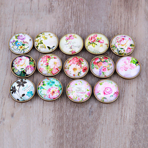 Кнопки пробивные с круглой шляпкой с цветочным узором, закрытом прозрачной смолой. Размеры дек..