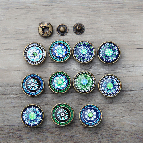 Кнопки пробивные с круглой шляпкой с узором в виде мандал, закрытом прозрачной смолой. Размеры..