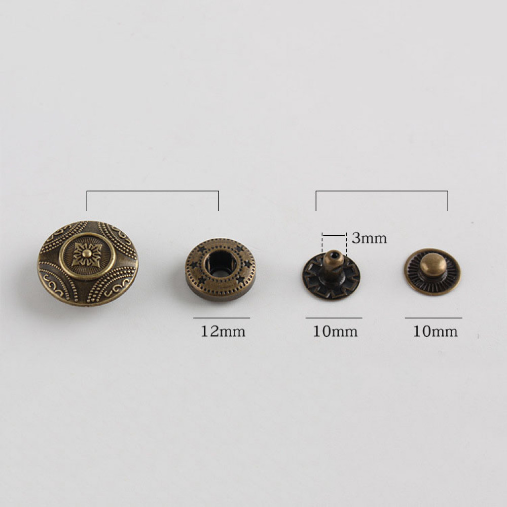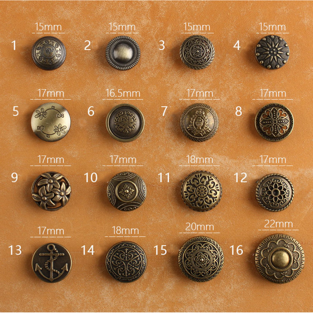 Кнопки пробивные фигурные, размеры шляпки разные (номера кнопок и размер см. дополнительные фото) + остальные детали соответствуют размерам кнопки 633 (12 мм).