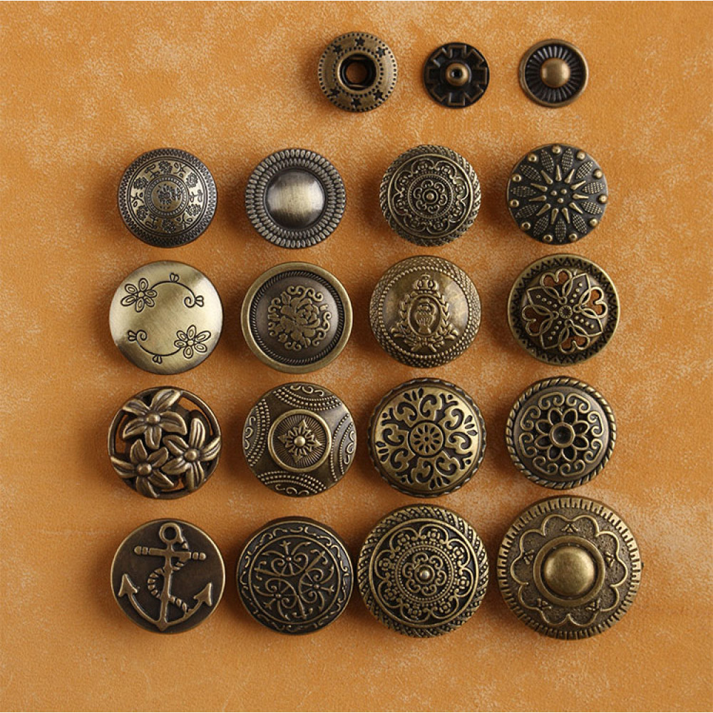 Материал: верхняя декоративная шляпка - цинковый сплав, кнопка - латунь.
