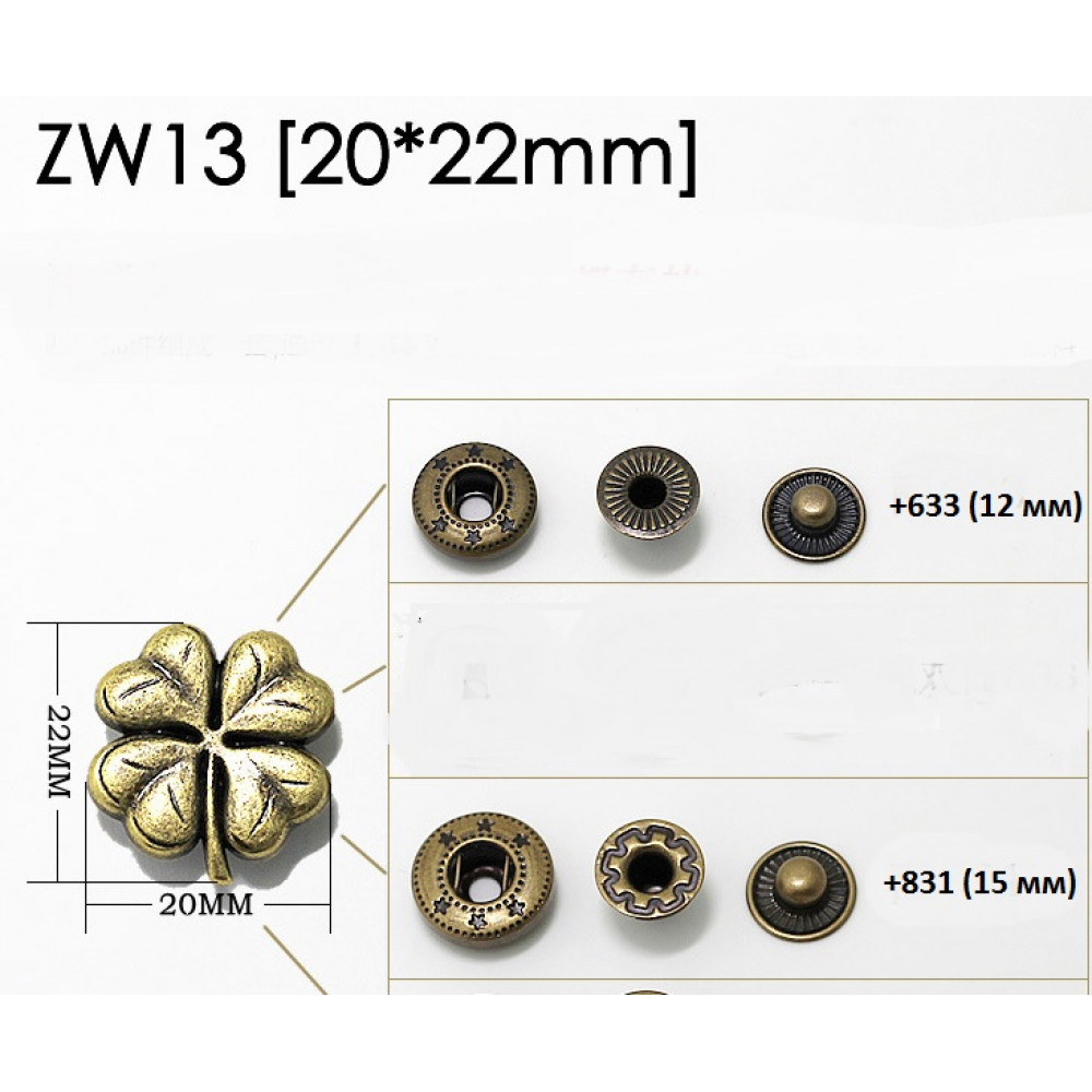 Кнопка пробивная фигурная, размеры шляпки разные (см. фото) + остальные детали соответствуют размерам кнопки 633 (12 мм) либо 831 (15 мм)