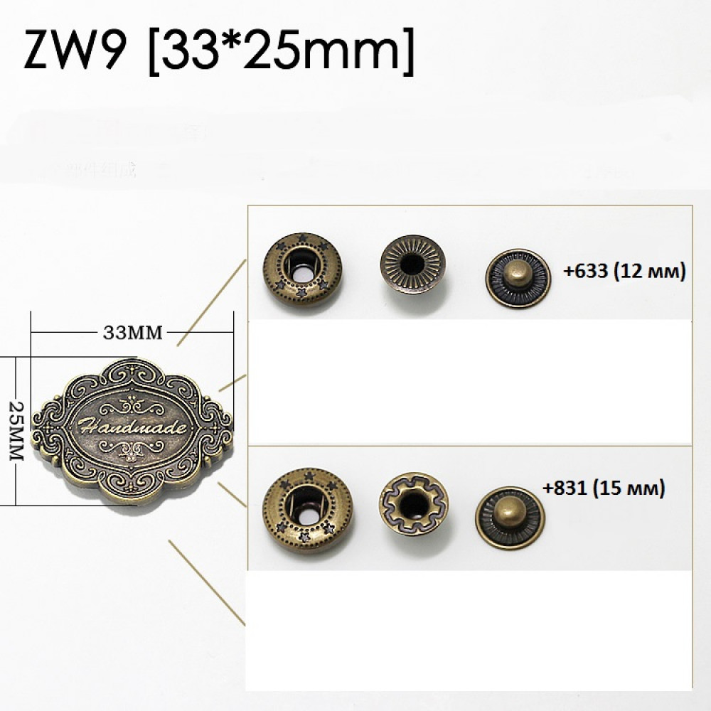 Кнопка пробивная фигурная, размеры шляпки разные (см. фото) + остальные детали соответствуют размерам кнопки 633 (12 мм) либо 831 (15 мм)