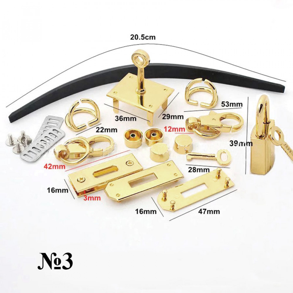 Комплект качественной галантерейной фурнитуры для изготовления сумки типа Hermes Birkin.
