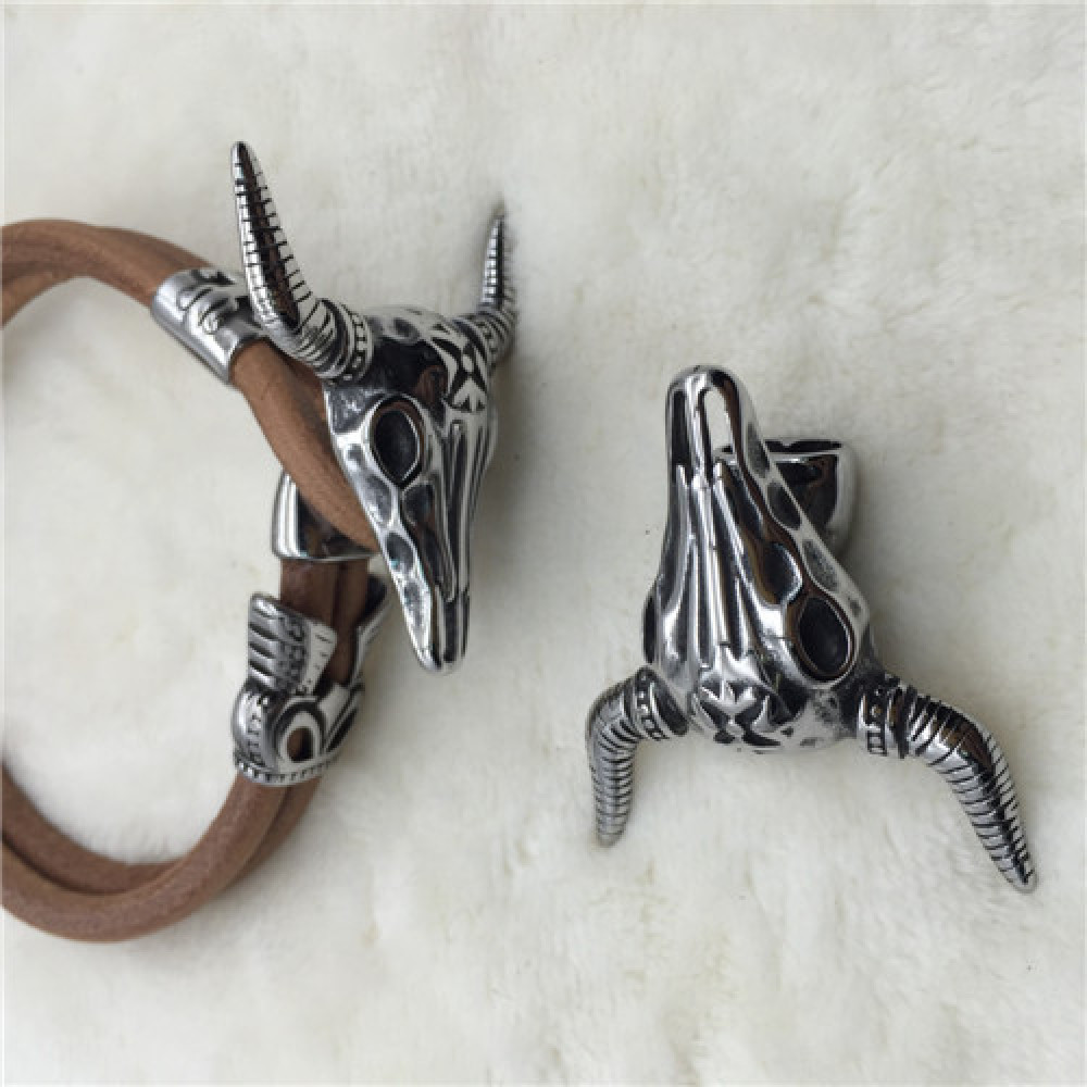 Концевик на два шнура 10х5 мм Череп Буйвола Сталь