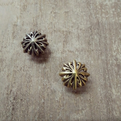 Металлические зажимы применимы для декора изделий из кожиМатериал: латунь. Цвет: под состаренное сер..