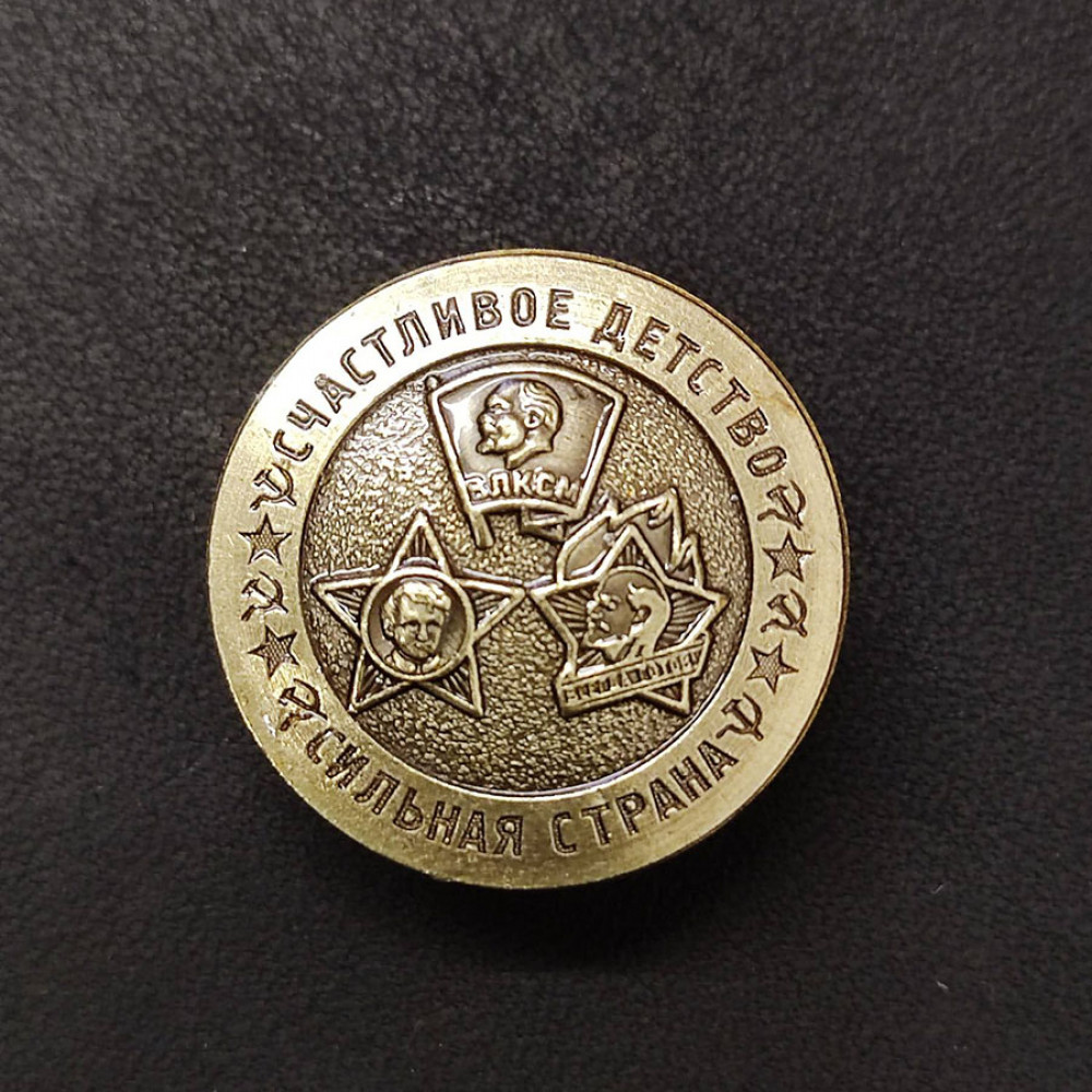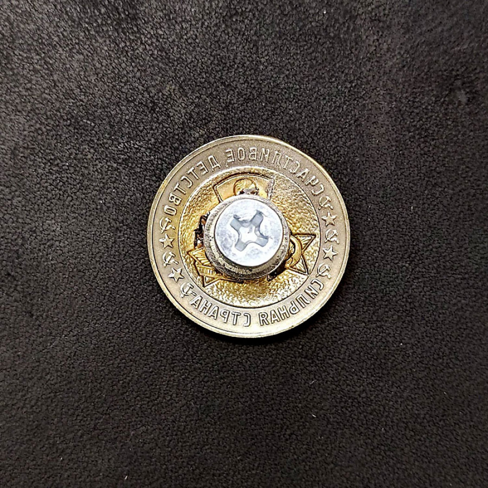 Кончо винтовые - металлические украшения для кожи c изображением трех значков времен СССР: октябренка, пионера и комсомольца