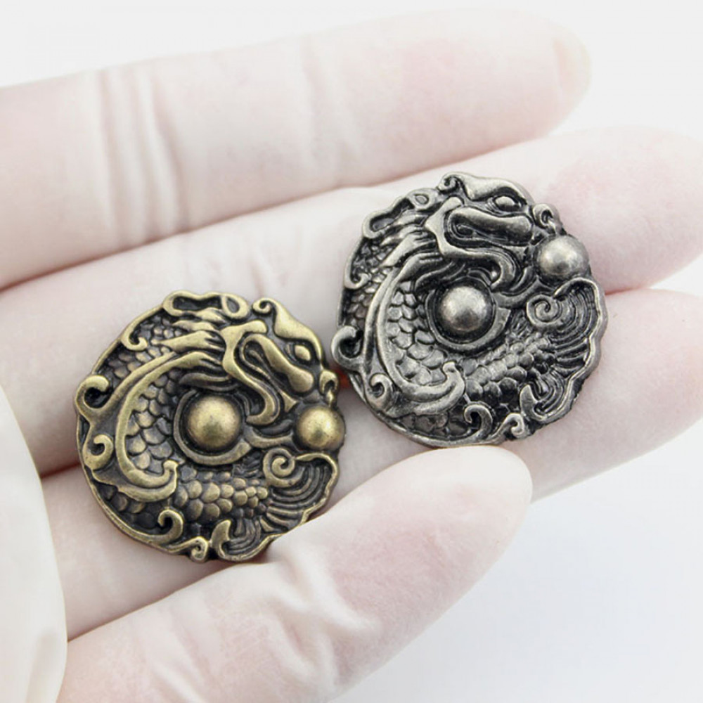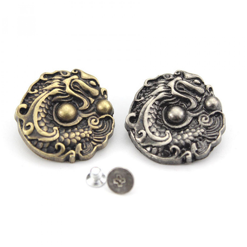 Металлические украшения для кожи - кончо с изображением Дракона, играющего с бусинами