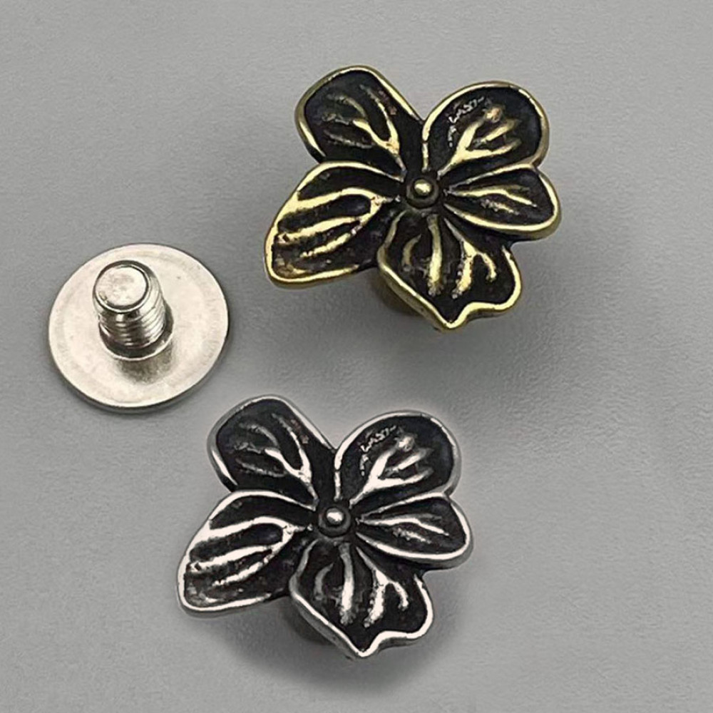 Латунное украшение в виде цветка с винтовым креплением для декора изделий из кожи.