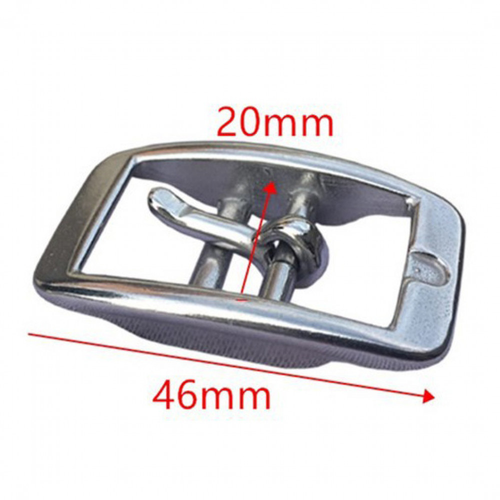 (20) 46х27 мм - внешний; 33х20 мм - внутренний, место крепления ремня 20 мм, для ремня шириной 18-19 мм.