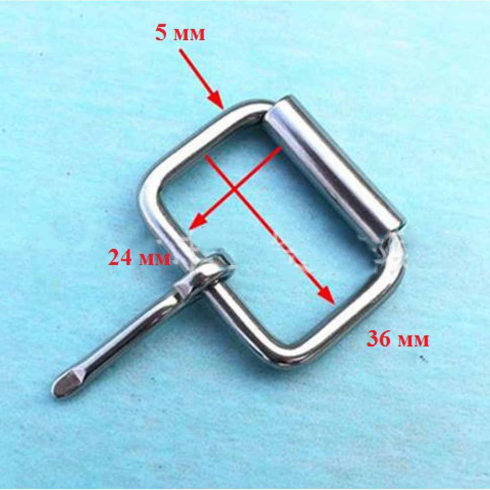 (36) 46х36 мм - внешний; 36х24 мм - внутренний, место крепления ремня 36 мм, для ремня шириной 34-35 мм, толщина прута 5 мм