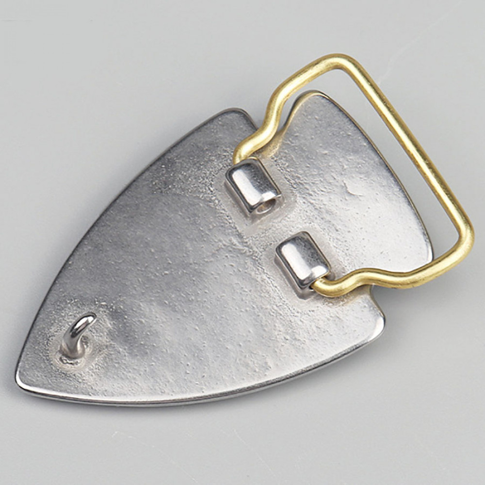 Пряжка для ремня с шипом в цвете белая медь, с необычным рисунком и нестандартной формы - в виде наконечника копья из каменного века