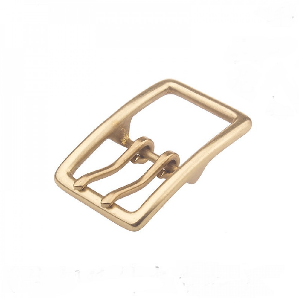 Добротная латунная пряжка для ремня классической формы с перекладиной и двумя язычками