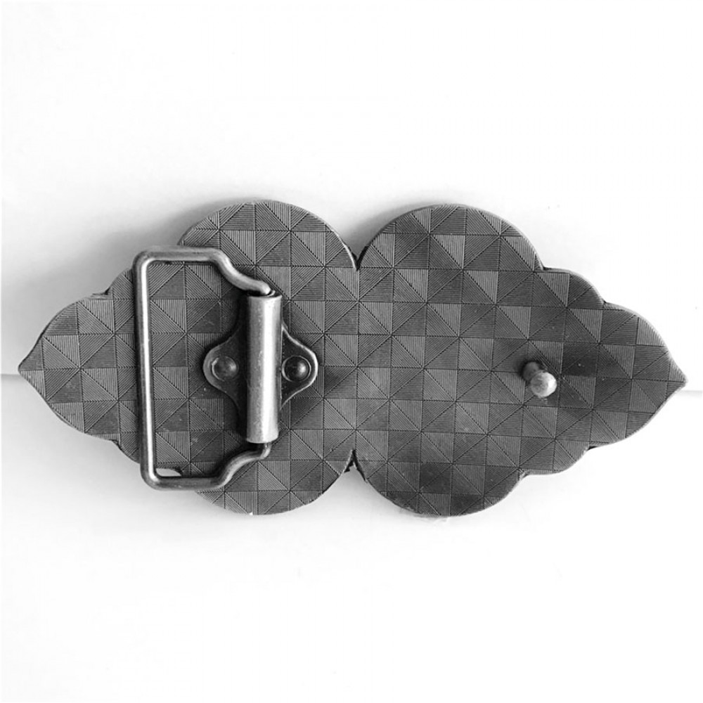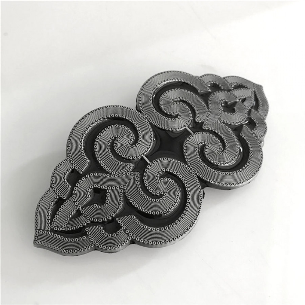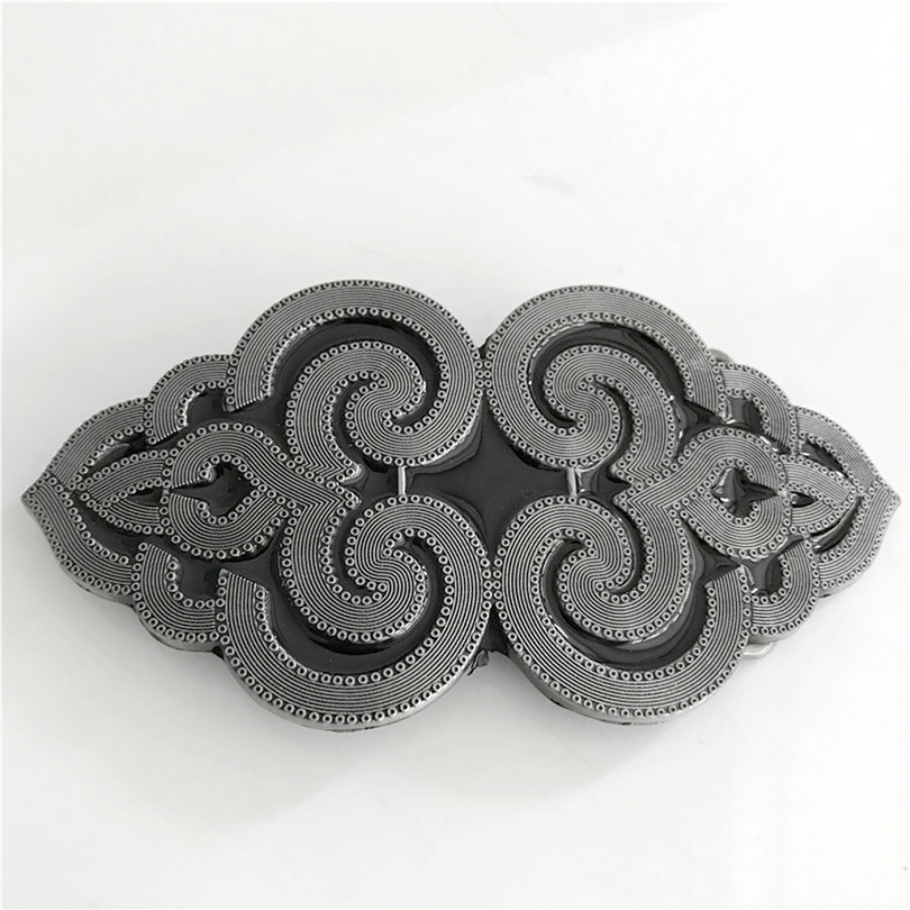 Стильная декоративная пряжка с популярным китайским орнаментом со специальным покрытием под черненое серебро.