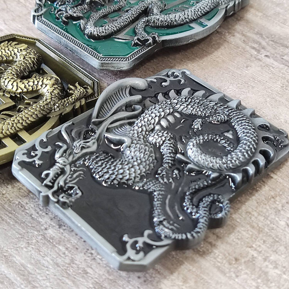 Стильная декоративная пряжка с китайским драконом со специальным покрытием: темная латунь, под черненое серебро, черная