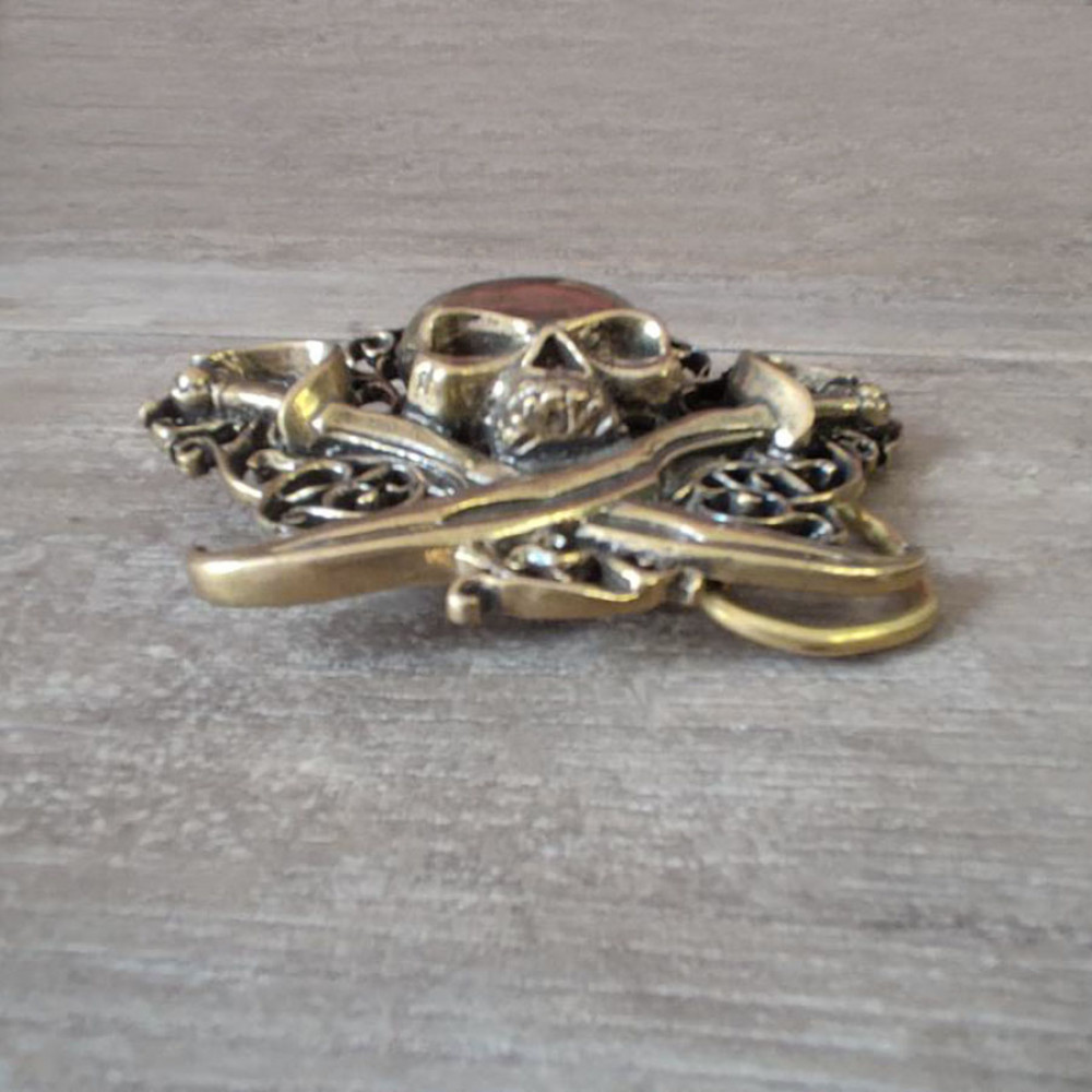 Качественная латунная пряжка для ремня с изображением в виде черепа над скрещенными саблями.