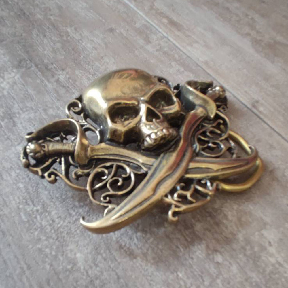 Теги: фурнитура латунная для ремней, пряжки с шипом, пряжки декоративные, Череп и сабли