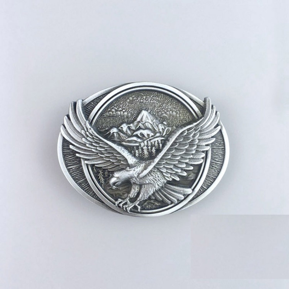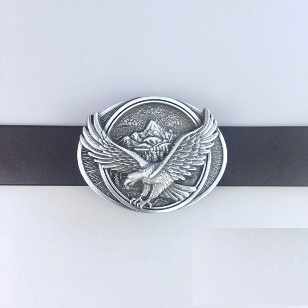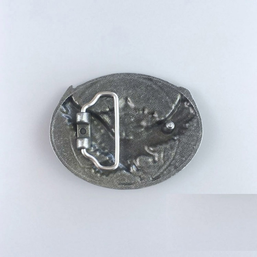 Декоративная пряжка для кожаного ремня высокого качества из цинкового сплава со специальным покрытием под серебро, крепление - из нержавеющей стали.