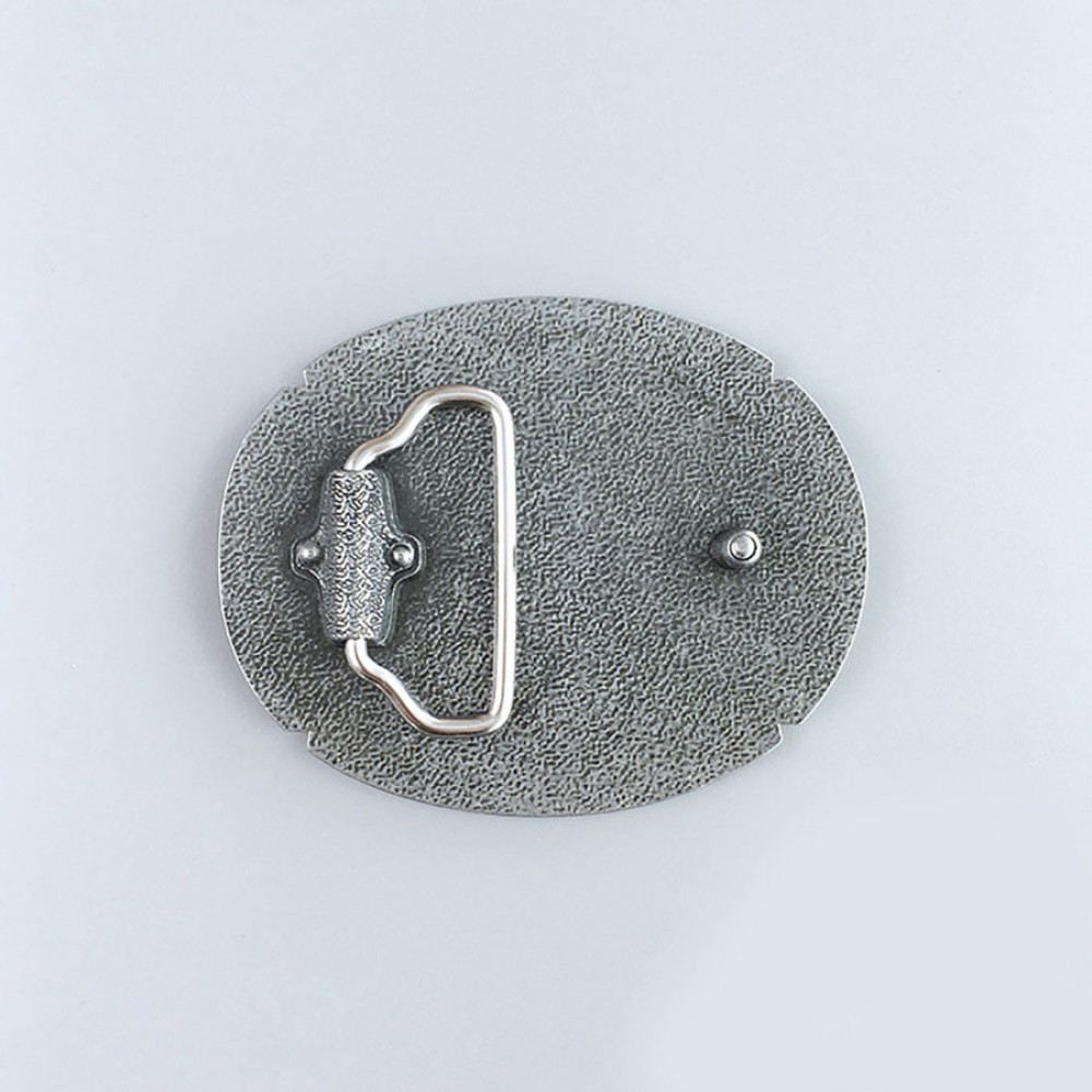 Декоративная пряжка для кожаного ремня высокого качества из цинкового сплава со специальным покрытием под серебро, крепление - из нержавеющей стали.