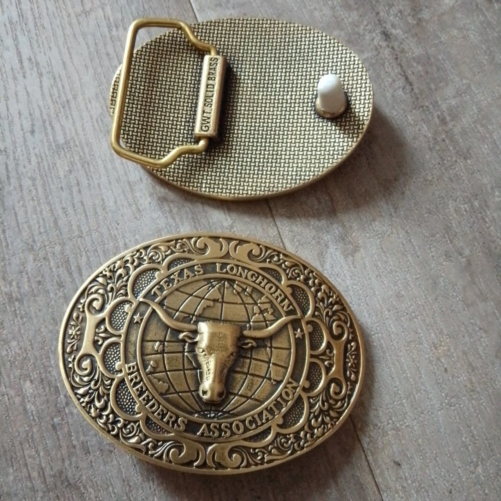 В пряжке подходит латунная шлевка Шлевка для ремня c орнаментом Латунь №2, немного отличается оттенок латуни