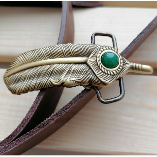 Пряжка для ремня декоративная под бронзу, отделка зеленая вставка Материал: латуньРазмер: 30х90..