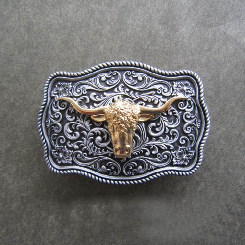 Декоративная пряжка со специальным покрытием под черненое серебро, голова быка - с золочением, что о..