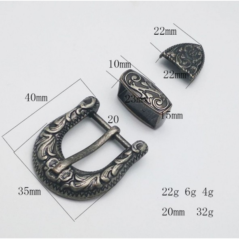 Комплект фурнитуры для ремня 20 мм Серебро антик