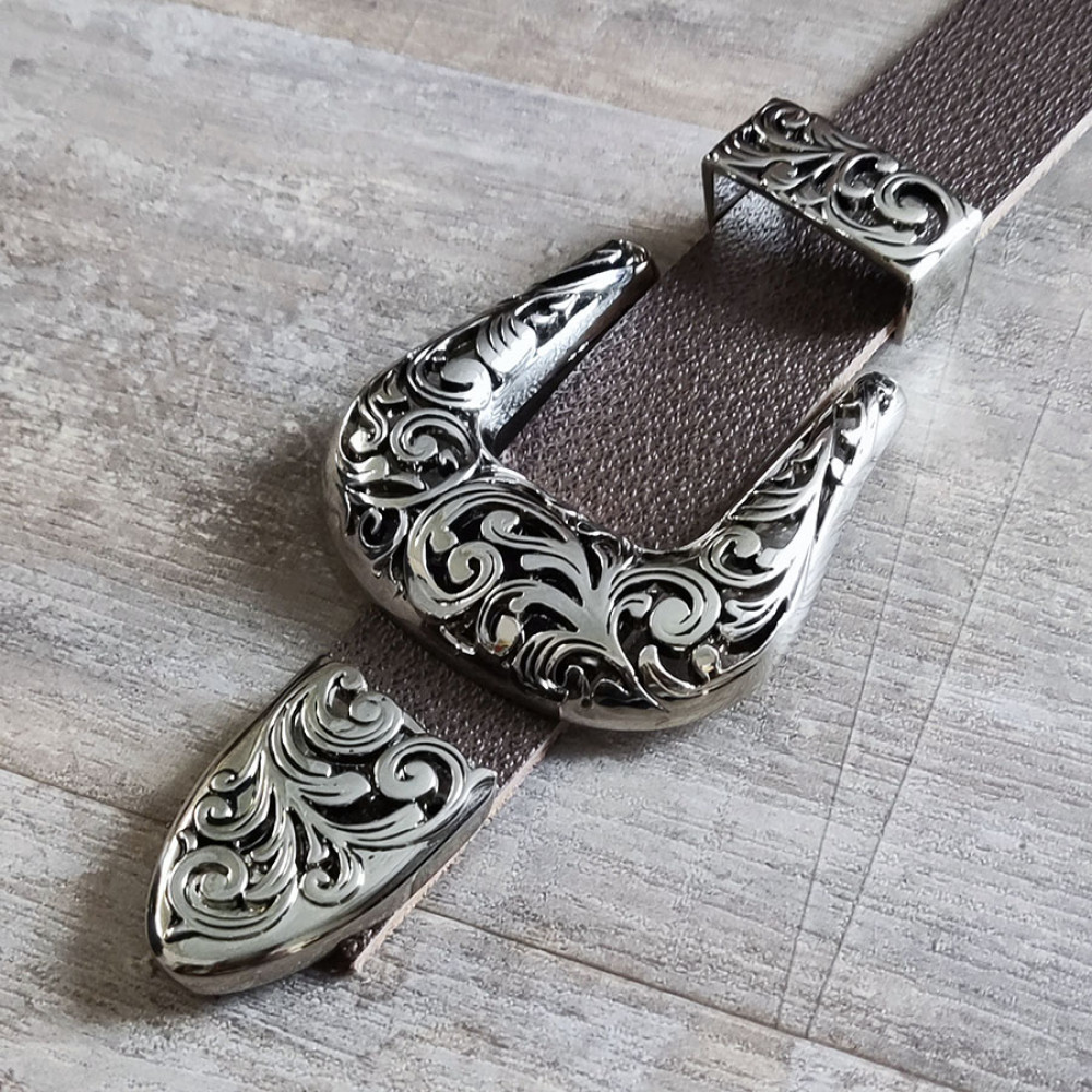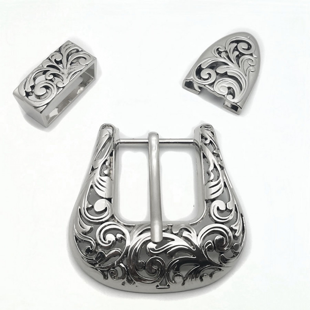 Металлофурнитура ременная - элегантная пряжка для кожаного ремня в комплекте со шлевкой и наконечником