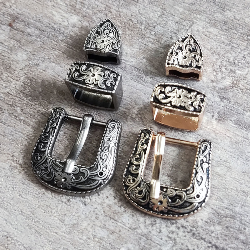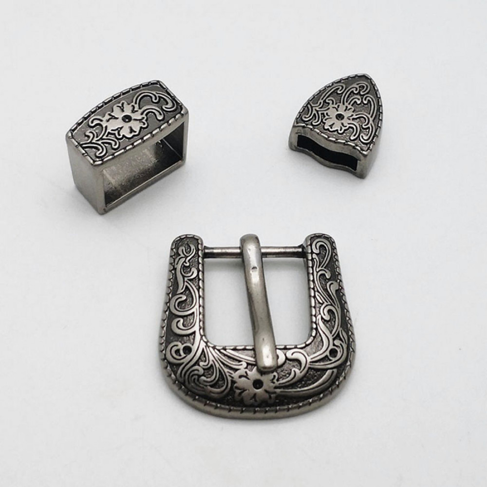 Пряжка для женского кожаного ремня в комплекте со шлевкой и наконечником, цвет под состаренное серебро