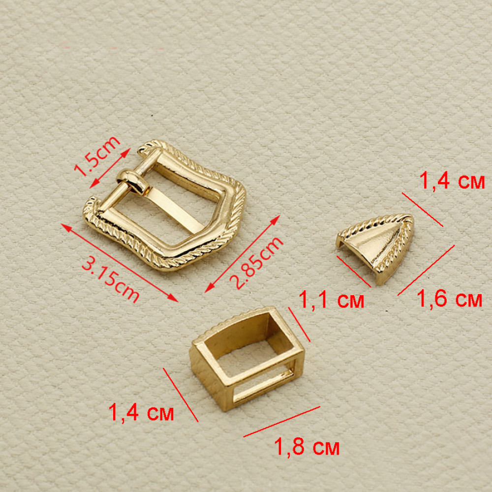 Цена указана за 1 комплект (пряжка, шлевка, наконечник для ремня). Крепления наконечника в комплекте нет.