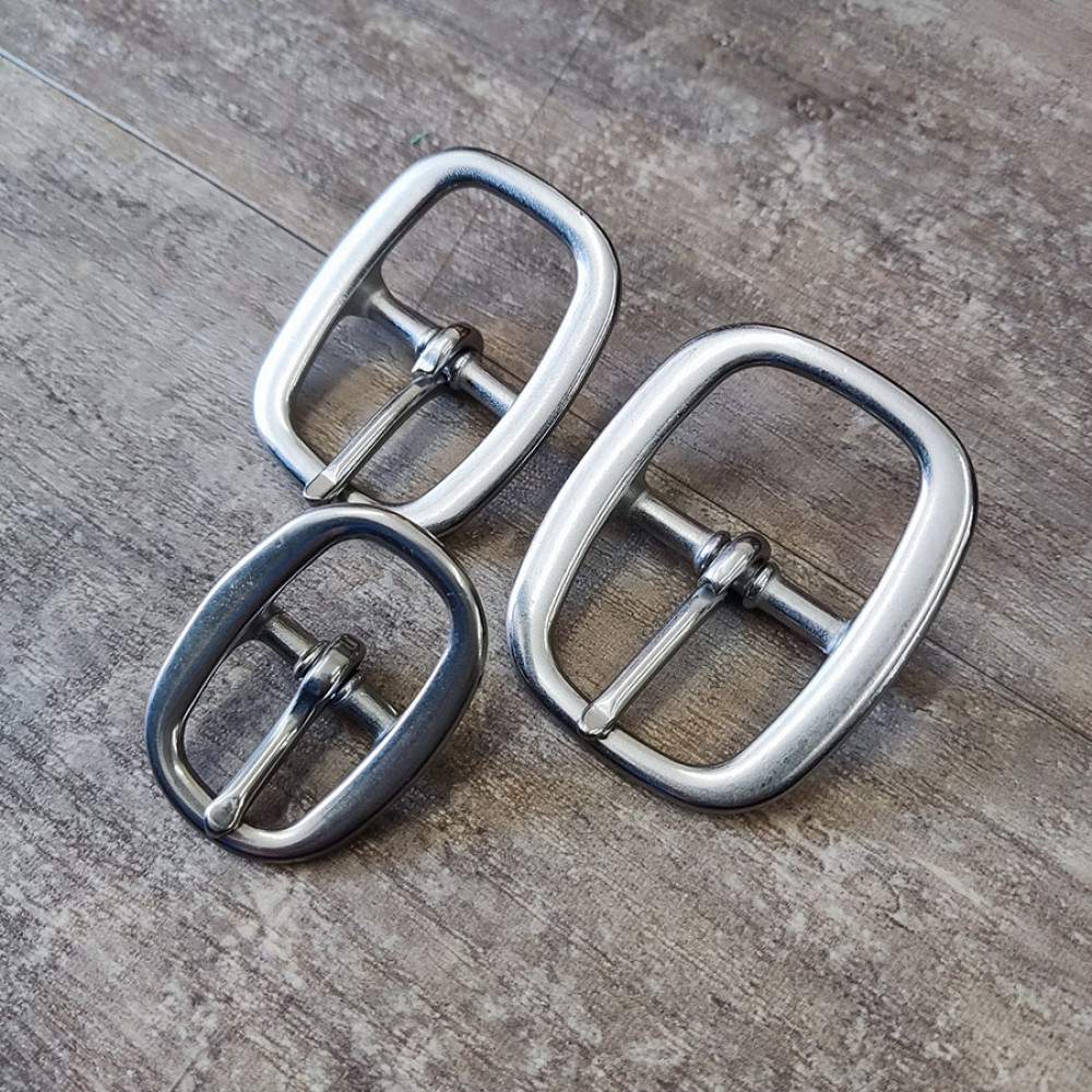 Пряжки с перекладиной и фиксацией язычка из нержавеющей стали для кожгалантерейных и шорно-седельных изделий (тренчиков конной амуниции, ремешков сумок, портфелей и пр.).
