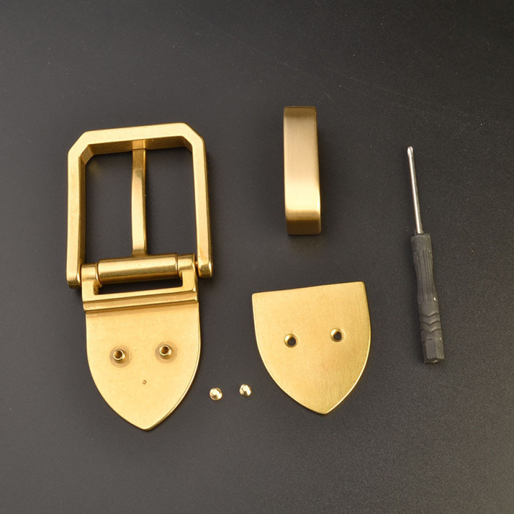 Набор латунной фурнитуры для ремня, состоящий из пряжки, шлевки, инструментов.