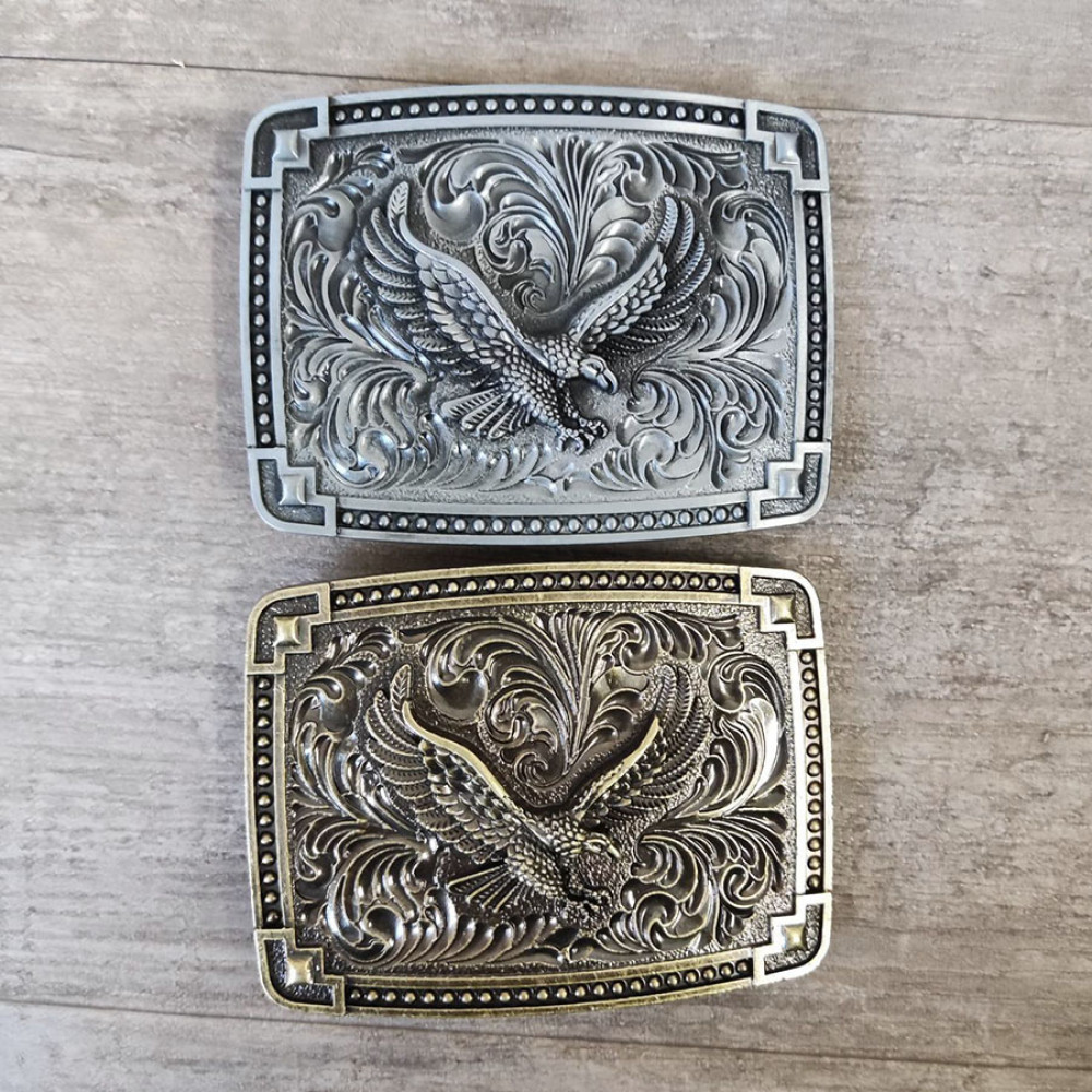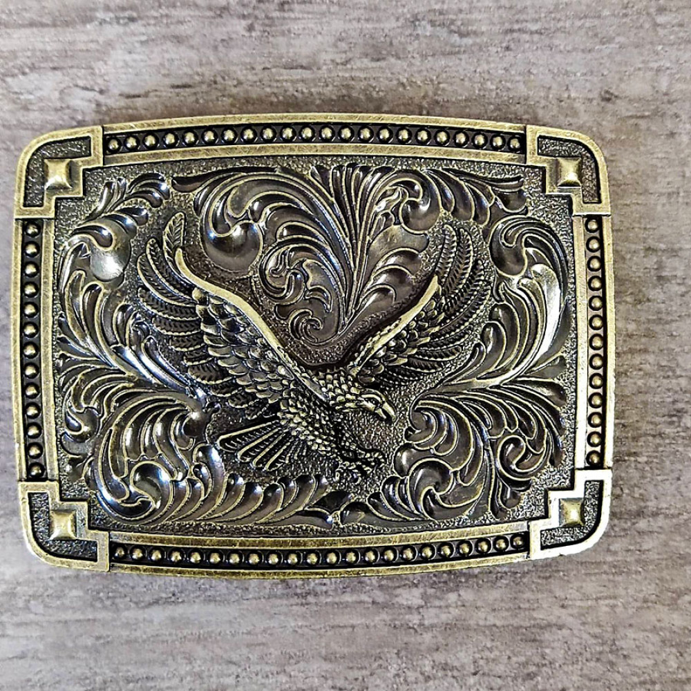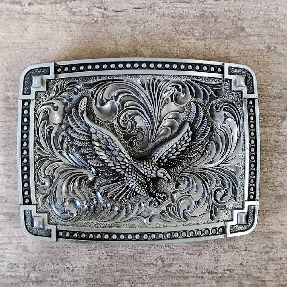 Стильная декоративная пряжка с орлом на орнаменте, со специальным покрытием под черненое серебро или бронзу.