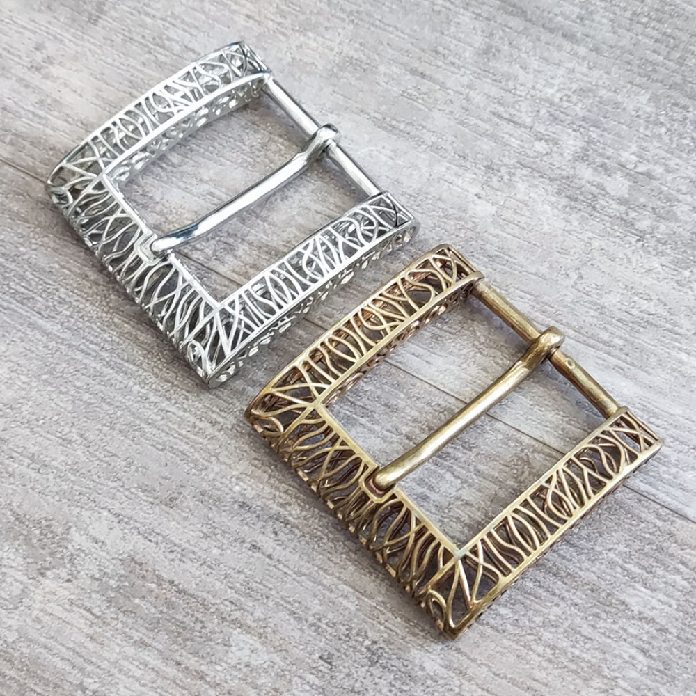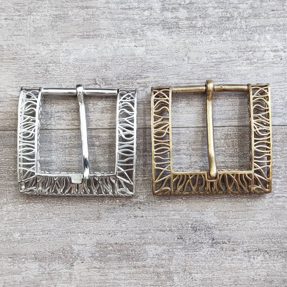 Пряжка металлическая для кожгалантереи для ремней 37-38 мм. Необычный дизайн пряжки - ажурный и одновременно объемный, придаст ремню уникальный вид.