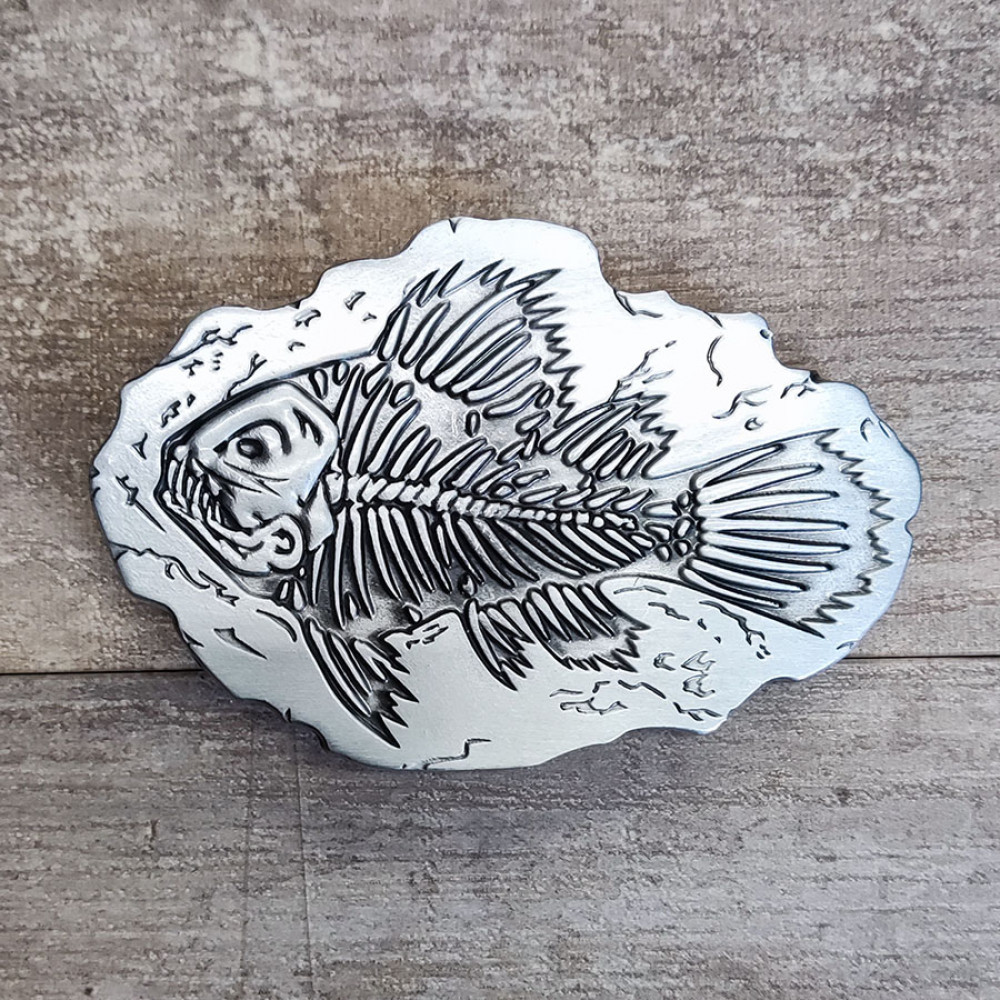 Декоративная пряжка с шипом в виде оттиска скелета древней рыбы