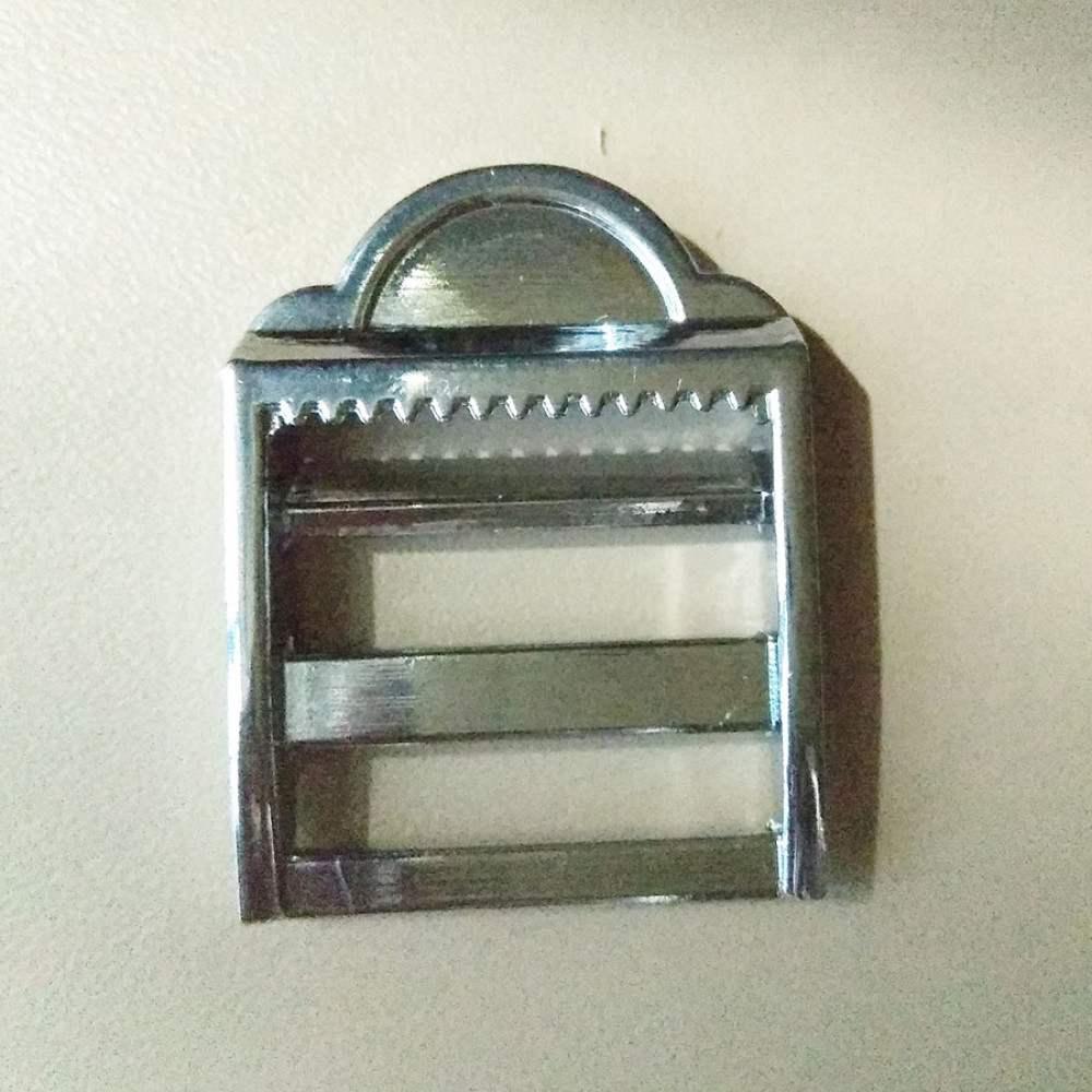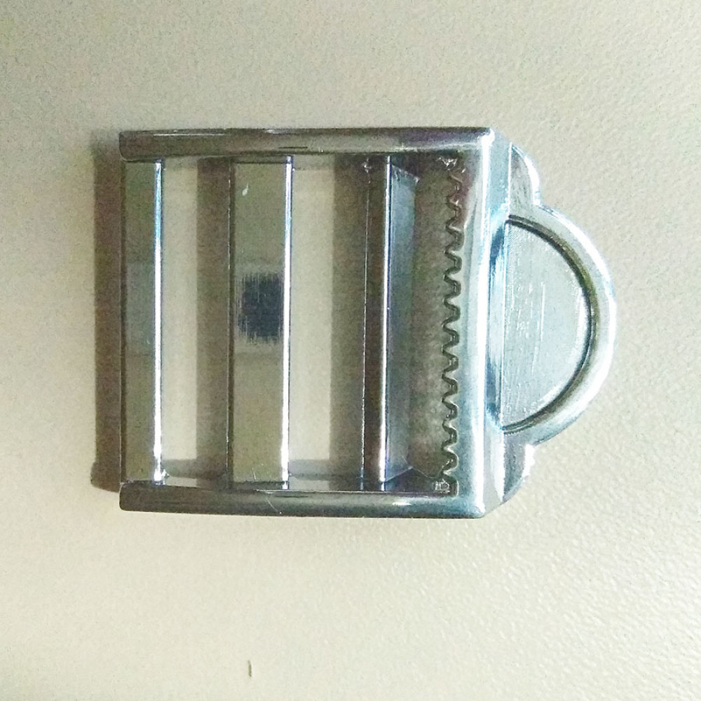 Трёхщелевая пряжка-регулятор (Ladderlock) на ременную ленту шириной 25 мм. Прочная металлическая пряжка с высококачественным гальваническим покрытием.
