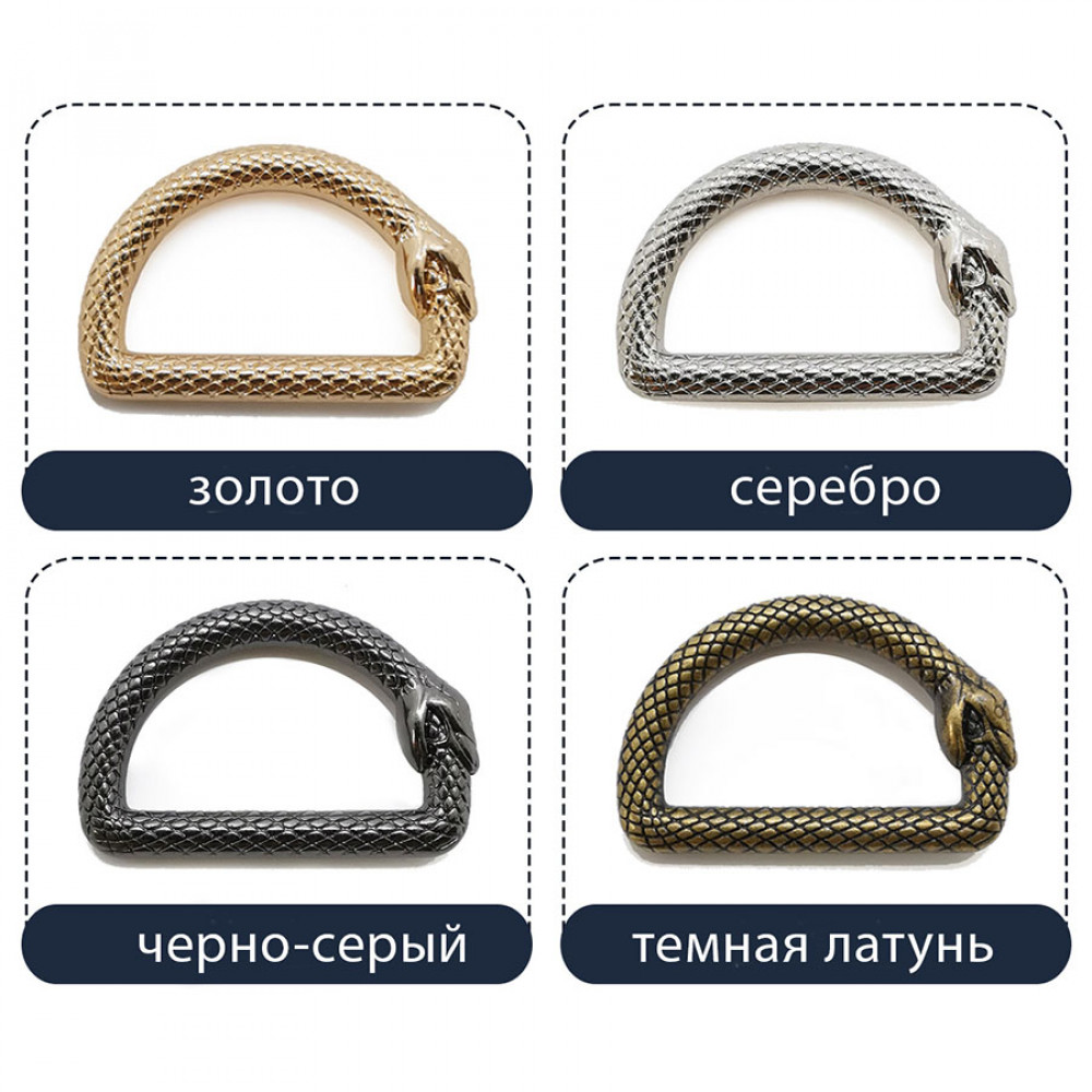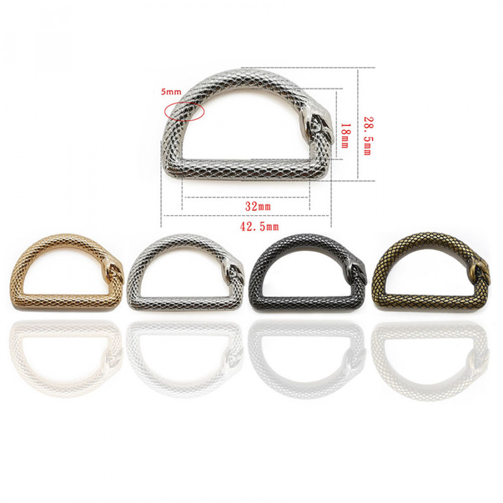 Полукольцо D-образная форма выпуклый орнамент со змеей, кусающей себя за хвост, на ремешки размером до 32 мм.
