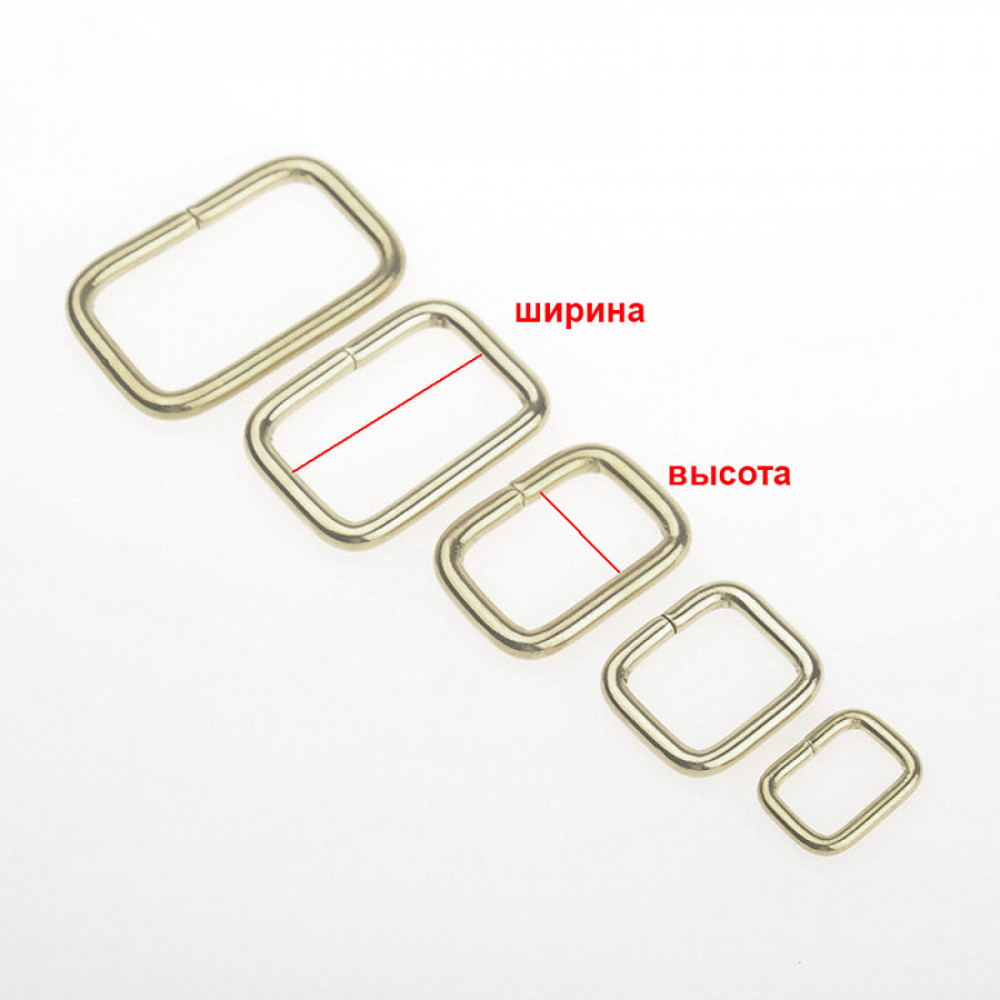 Металлическая прямоугольная рамка круглого сечения для сумок, портфелей, рюкзаков. Металл: Латунь.