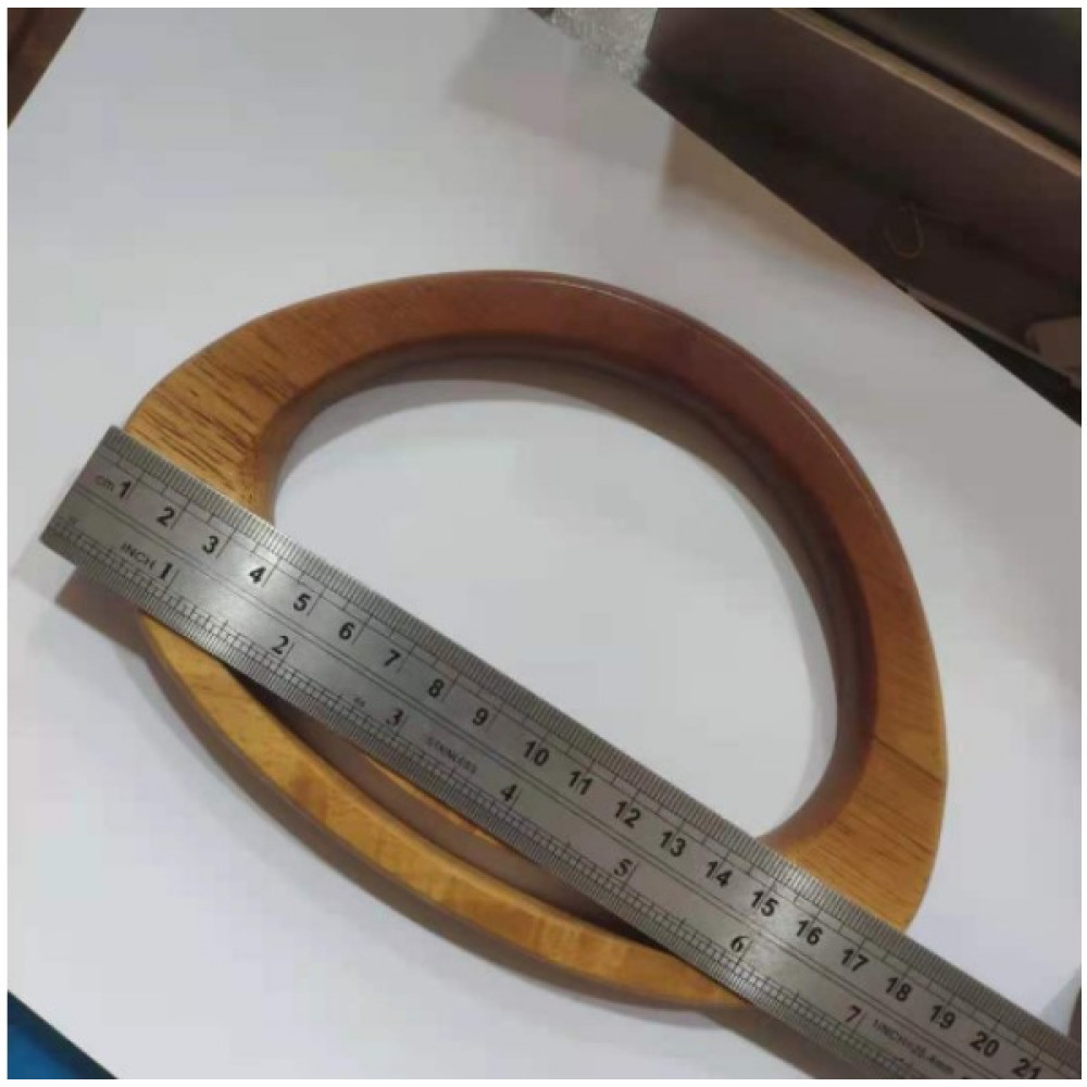 Деревянные ручки для сумок в виде капли с прорезью в нижней части и интересной градиентной расцветки, наружный размер около 17*13 см, внутренний размер 12,3*8 см, толщина 1,2 см